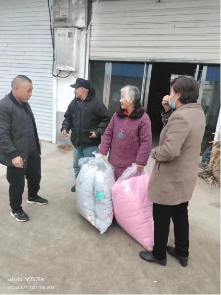 在对新纳入的监测户张俊祥户走访时发现,张俊祥次子张四化过冬棉被不足,工作队自费为该户购买了两床棉被和四件套等御寒物资,并叮嘱他们要注意防寒保暖,做好御寒防护措施。
