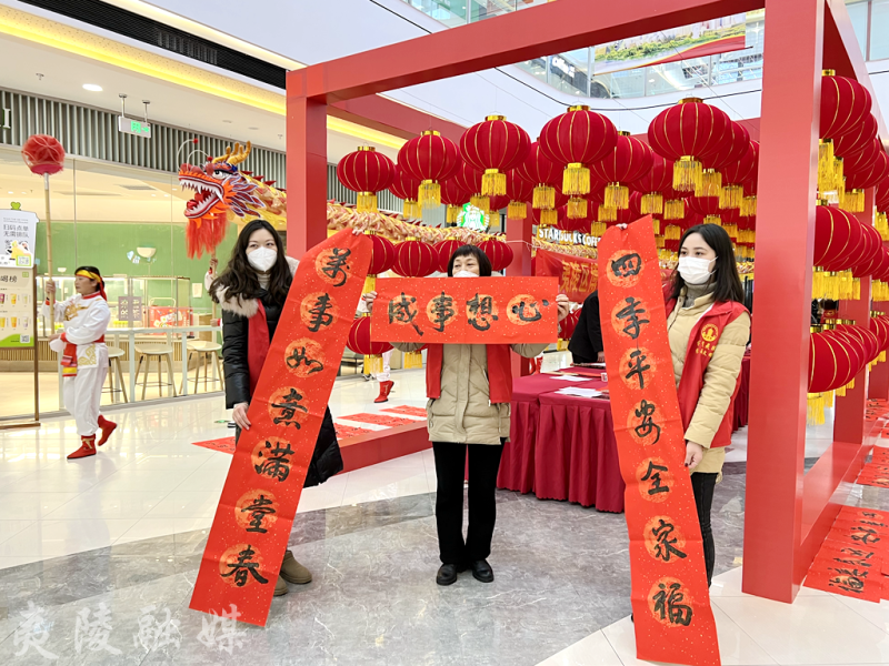 来自夷陵区博物馆、老年书法家协会的书法爱好者们现场挥毫泼墨,书写着充满吉祥的祝福对联,为即将到来的兔年春节送上节日祝福。夷陵区博物馆馆长余国斌介绍,当天计划送出500副对联,“这是博物馆坚持10年之久的传统文化节目,每年的春节前夕,我们都要送出对联惠民惠赠。”