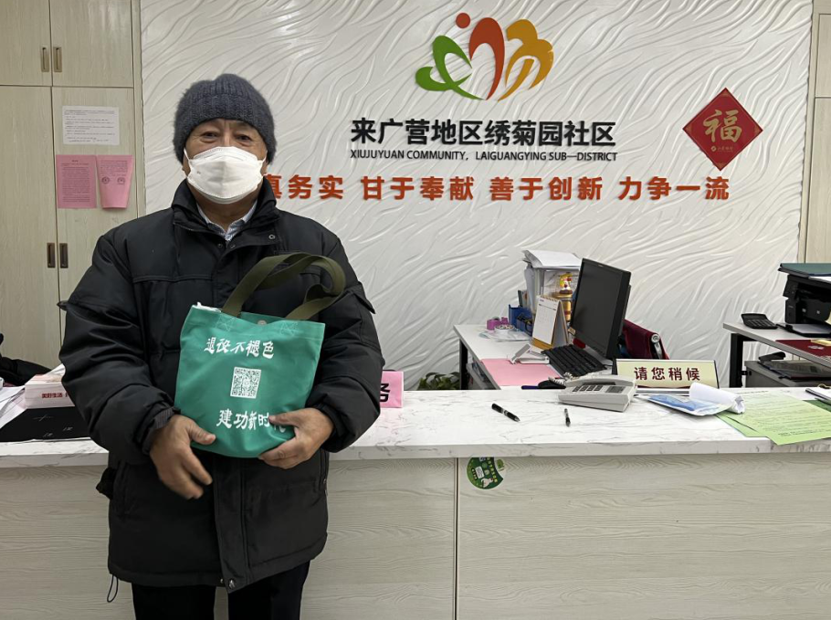临近农历新年,气温骤降,来广营地区便民服务中心开展了冬日送暖活动,为到窗口办理就失业人员和辖区退役军人发放暖心慰问包。