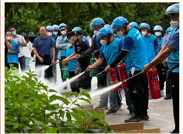 ▲在小关广场组织地区送餐员、保安员、环卫保洁员和中介服务员参加安全知识技能竞赛,增加实际操作经验,牢固树立安全第一,预防为主,遇到火情第一时间扑救和报告的意识。