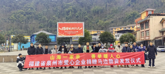 1月17日,团县委在雪口山镇举行福建省泉州市爱心企业捐赠马边物资发放仪式。仪式上,福建省华宝智能科技有限公司、联杰(福建)投资集团有限公司、晋江劲霸男装有限公司三家爱心企业向马边捐赠了生活物资、医疗物资,共计35万元。县委常委徐泽星出席仪式并发表讲话。