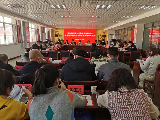 为贯彻落实习近平新时代中国特色社会主义思想和党的二十大精神,进一步推动党组织书记抓基层党建工作“第一责任人”职责落地见效,1月17日,富兴街街道党工委召开2022年度党组织书记抓基层党建工作述职暨述责述廉评议考核会。街道领导班子成员、四办(三中心)负责人、各社区书记、副书记及“两代表一委员”代表参加,县委组织部干部与会指导。