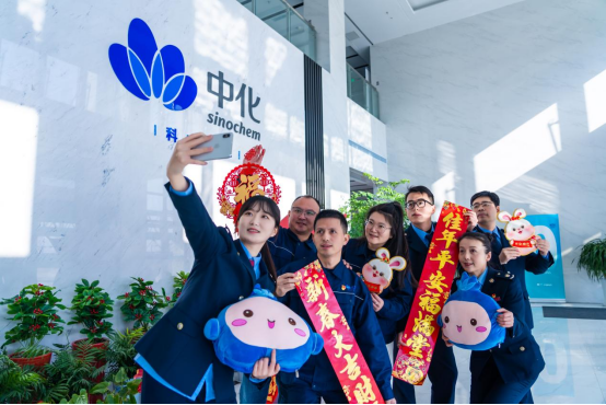 图为连云港市税务干部与中化企业员工拍照留念、共贺新春佳节。