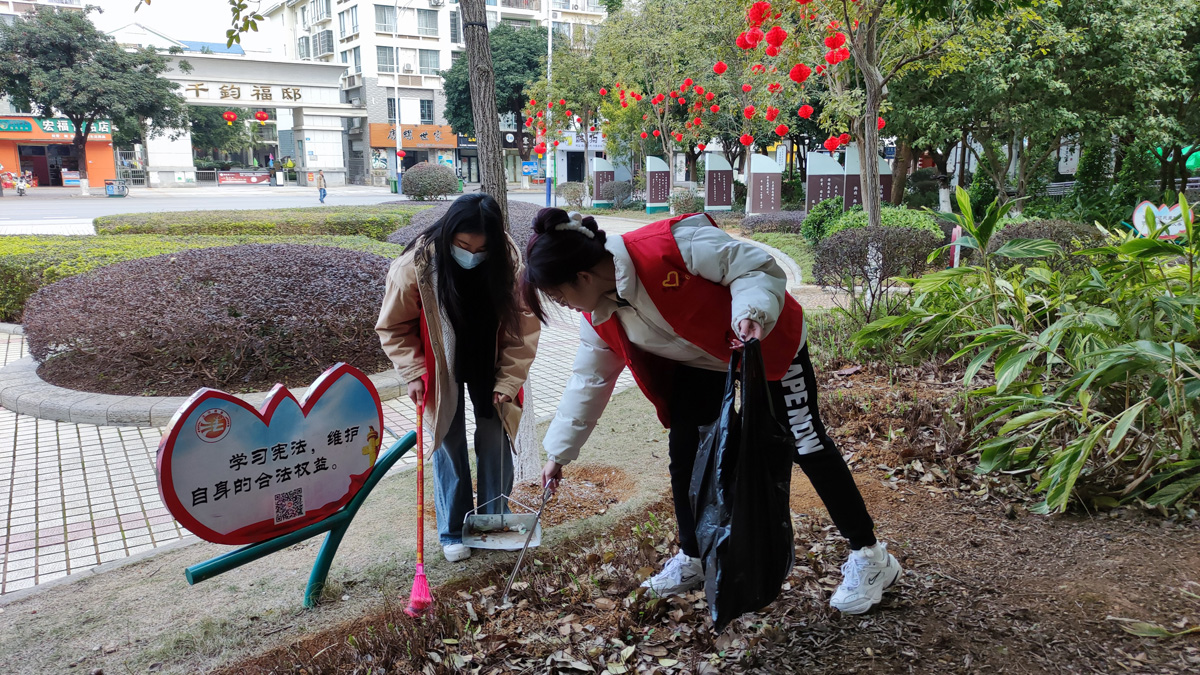 新春将至,为进一步弘扬“奉献、友爱、互助、进步”的志愿服务精神,营造干净、整洁、文明、有序的迎新春良好氛围,1月18日,团县委联合县新时代文明实践志愿服务总队、县青年志愿者协会,组织“返家乡”大学生,在法治文化主题公园开展2023年鹿寨县“我们的节日·春节”暨“青力青为·美化环境”创城志愿服务活动。