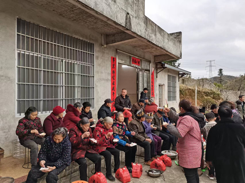 在600多人的福龙村马腰屯中,60岁以上的老人有50多名。为让老年人过得舒心,村民理事会发挥统筹协调作用,在每年春节前夕发起敬老爱老活动,村民们自发捐款出力为老人们在春节前筹备一餐团圆饭。老人们聚在一起相互问候,拉拉家常,吃一餐团圆饭,提前感受春节的喜庆氛围。而理事会也为老人们发放慰问红包,让老人家过年舒心、开心。