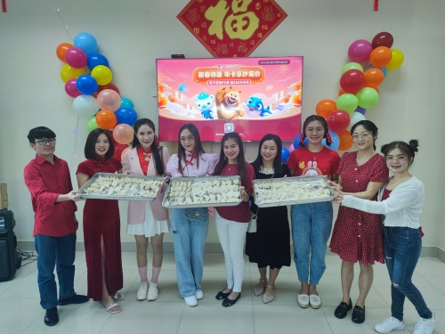 在中国电建万象大厦负责人的一声令下,大伙齐聚食堂开始包饺子。综合部的老籍办事员纪雪自信地向凯特介绍着包饺子的由来。去年纪雪参加了南俄5电站现场的基层新春活动,包饺子也是当时学会的,还学到不少中国文化。纪雪自信的举起刚包好的饺子,她要来张合影,把包饺子“招财进宝”的寓意定格在此刻。