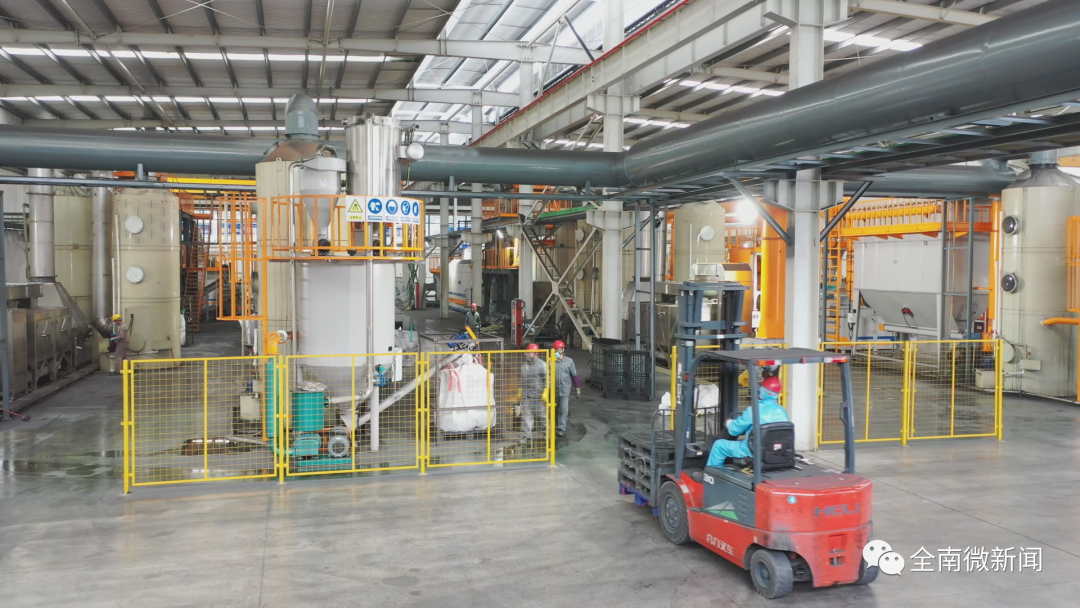 走进位于县工业园区的赣州赣锋再生资源有限公司,生产车间一片繁忙景象,生产流水线持续转动、忙碌的工人们一刻不停,在各自岗位上有条不紊地进行生产操作,经过多道工序,铁锂粉、铜颗粒源源不断走下生产线……
