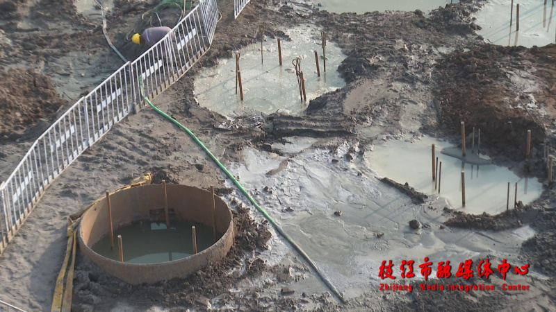 中交二公局当枝松高速公路DZSTJ-4项目经理部工班负责人范卫平说:“目前项目主桥墩是6号墩,总共有直径2米5的桩基60根,它的有效桩长是105米,从钢平台以下,我们的设备所做的是131.2米。主桥墩是整条线工程里面最主要的一部分,这一块我们要确保有效的工期内要按时完成,因为它有主塔的施工,所以这一块要确保工期。”