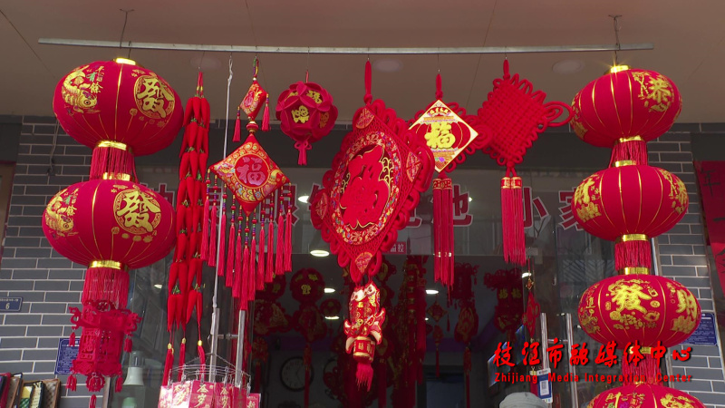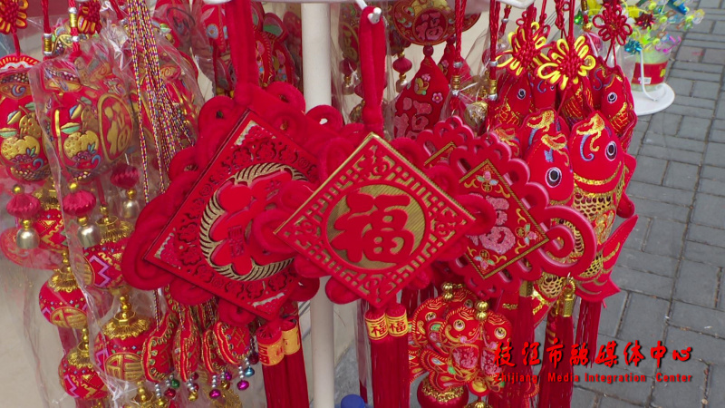 “我们准备了有很多的对联、中国结、大红灯笼之类的,准备得很充足,过年期间人流量大,生意很不错。中国结、兔子之类的都很受大家的欢迎。”临近春节,红红火火的各类年货营造出喜气洋洋的氛围,商家蒋小吉也是忙得不可开交。