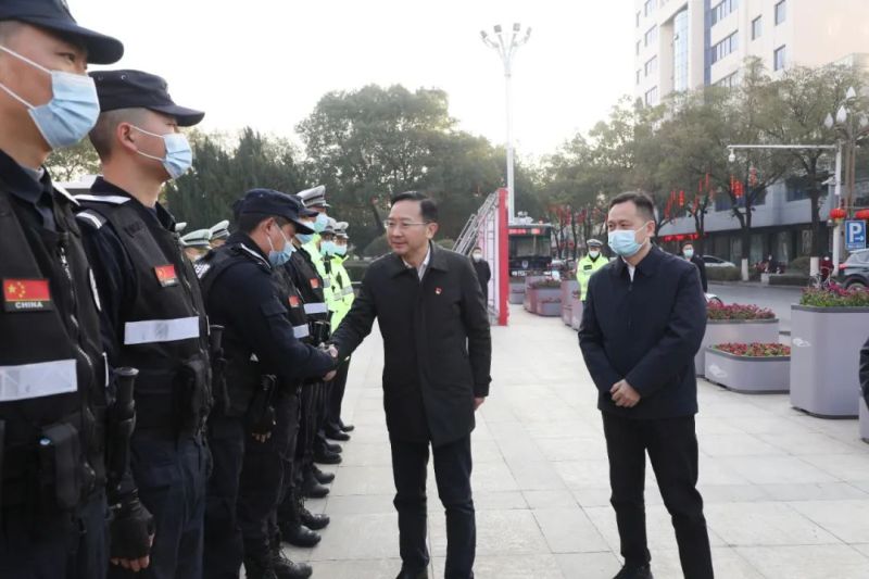 “大家辛苦了,我们今天来给大家拜年!”在大礼堂警务站,余峰与正在执勤的一线民警一一握手致敬,听取警务站运行情况、人员值班等工作介绍,对全市公安干警特别能吃苦、特别能战斗的精神给予充分肯定,勉励大家再接再厉、再立新功,节日期间继续落实好各项安保措施,确保全市人民过个平安祥和的春节。