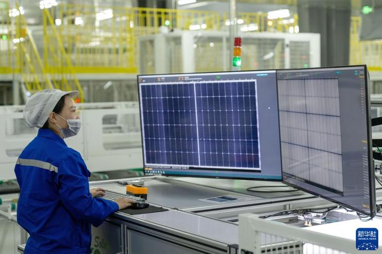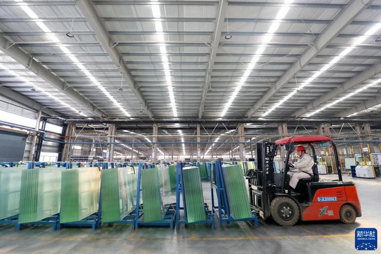1月28日,在位于湖南资兴经济开发区的旗滨光伏光电玻璃有限公司,工人在光伏组件高透基板材料生产车间忙碌。