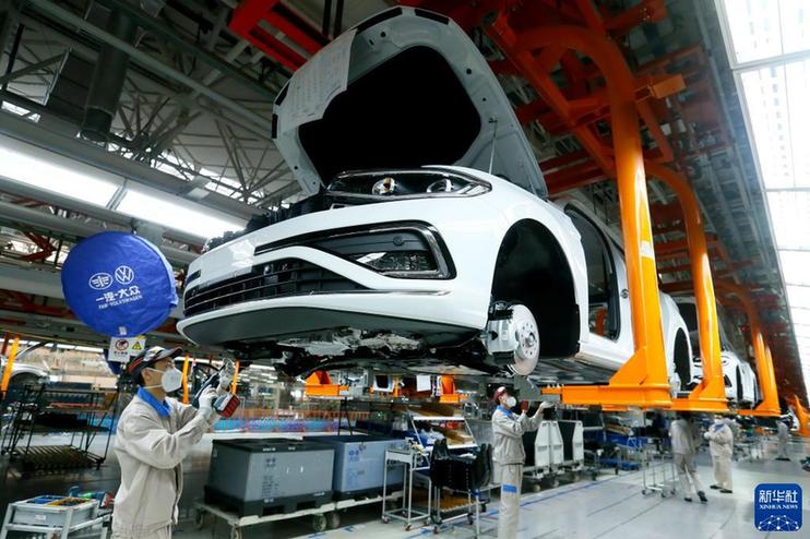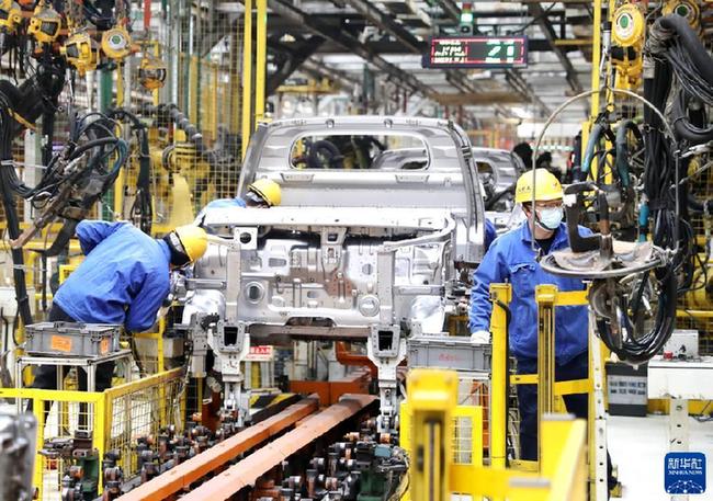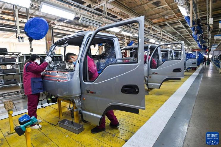 1月28日,工人在山东省青岛市即墨区一家汽车制造企业车间装配汽车。