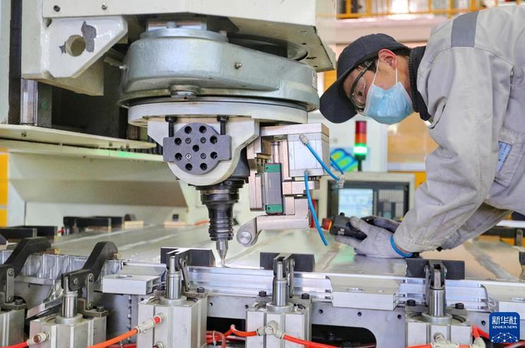 1月28日,工人在位于河北省秦皇岛市海港区海港镇的戴卡优艾希杰渤铝汽车零部件有限公司的汽车零部件加工生产线作业。