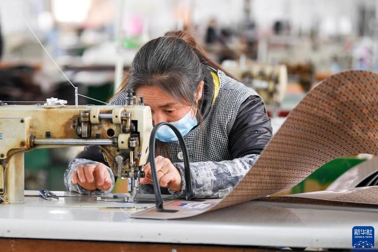 1月28日,工人在贵州余庆经济开发区内一家箱包企业车间内忙碌。