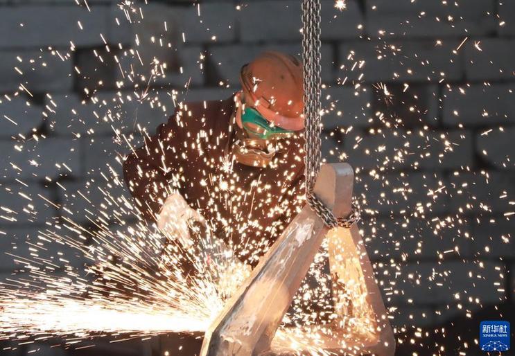 1月28日,工人在贵州省绥阳县经济技术开发区一家铸锻企业作业。
