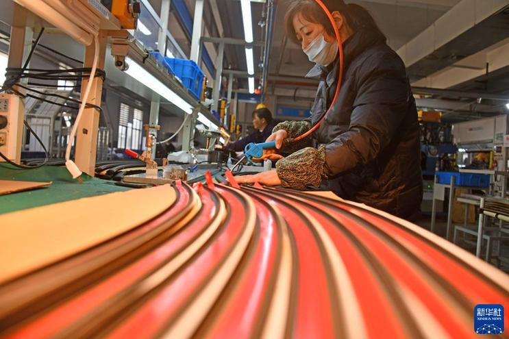 1月28日,工人在位于浙江省台州市仙居县下各镇的浙江仙居兴宇汽车零部件有限公司生产车间赶制汽车密封条。