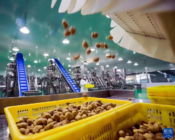 1月28日,工人在位于河北省迁西县的唐山尚禾谷板栗发展有限公司栗仁加工车间工作。