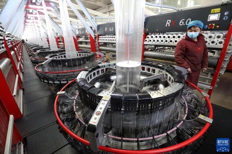 1月28日,工人在河北行唐经济开发区一家包装袋生产企业忙碌。