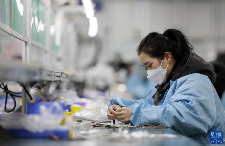 1月28日,工人在合肥市蜀山区一家生产制氧机及雾化器的企业车间作业。