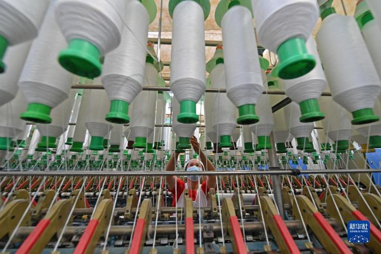 1月28日,在福建省泉州市泉港区山腰街道一轻纺工厂,工人在生产线上忙碌。