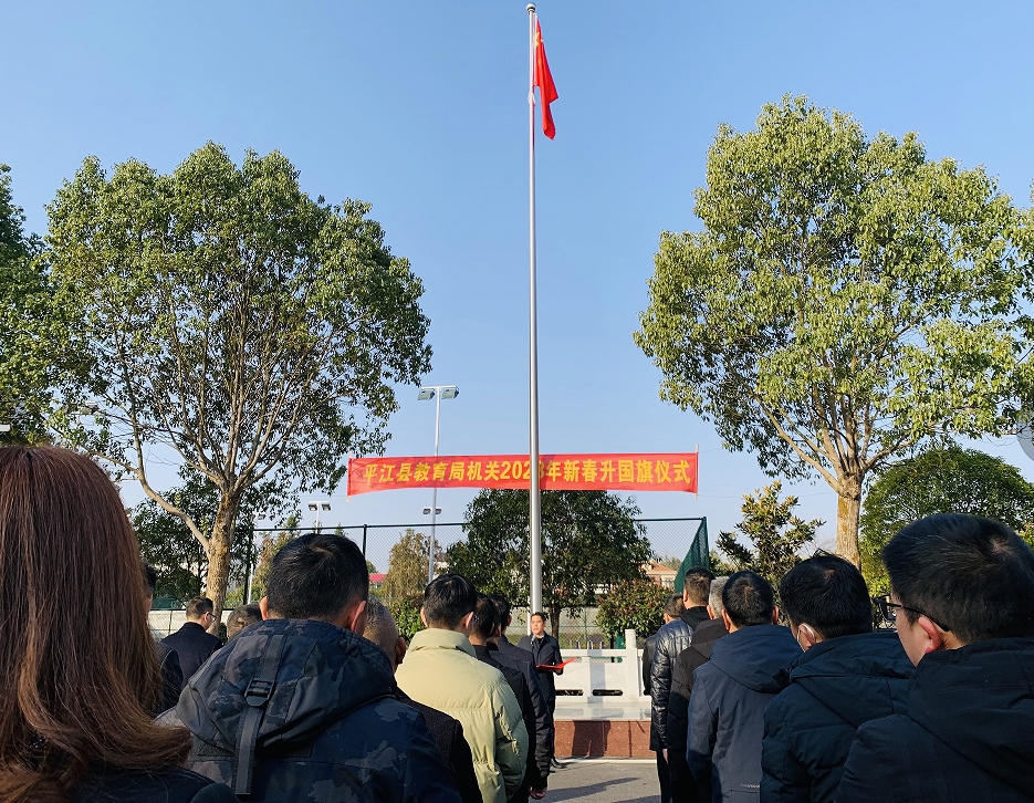 局党组书记、局长张智鑫送上暖心的新年祝福,并发表国旗下的讲话。他指出,回望过去的一年,全县教育人团结协作、拼搏奋斗,成果丰实,书写了平江教育发展的高分答卷。新的一年,我们要更加坚定信念、团结协作、担当作为、争先创优,对标先进,全力以赴,真抓实干,用实绩实效来擦亮平江教育品牌。以起步即冲剌、开局即决战的状态,锚定打造“清廉、活力、品牌”的平江教育这一高质目标,在全面推进基础教育优质均衡发展的新征程新赛道上实现新跨越,展现新作为。