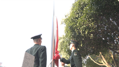 上午8时许,升旗手、护旗手踏着铿锵有力的步伐,迈向升旗台。在雄壮激昂的国歌声中,鲜艳的五星红旗冉冉升起,全体人员整齐队列、庄严肃立,向国旗行注目礼。