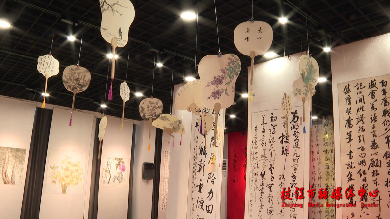 正月初七,年味仍浓。在悠扬的古筝声中,记者推开书画展馆的大门,映入眼帘的是布置整齐的书画、灯笼、团扇等中国传统元素,展示着沉淀几千年的文化与艺术。