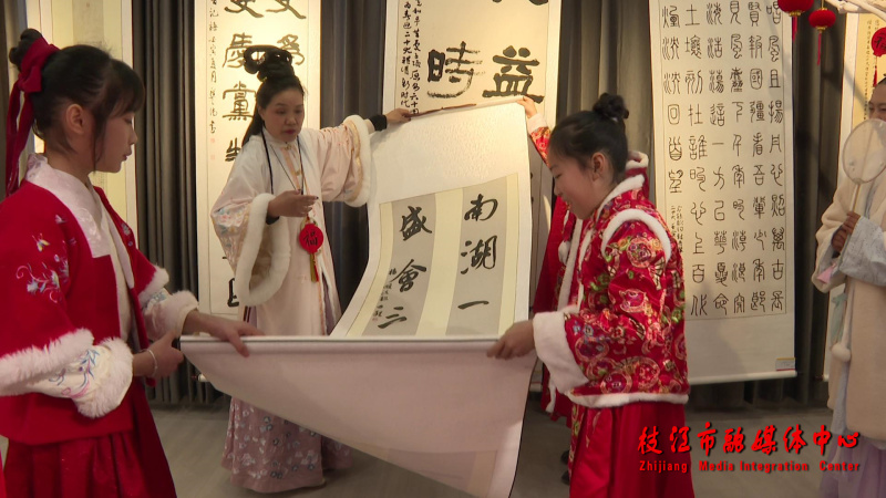 枝江融媒(记者 闫双双 严心怡)1月21日至28日,枝江市工人文化宫书画展馆用与众不同的展览方式和独具匠心的书画布置,吸引了广大市民前来徜徉历史,感受传统文化,欢乐过大年。