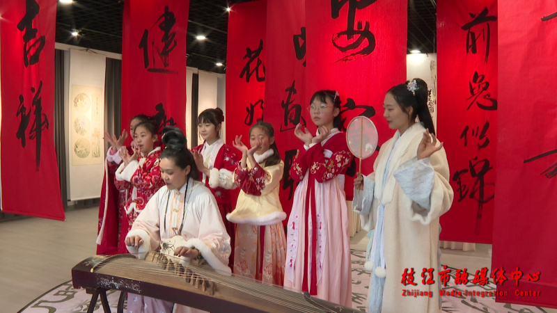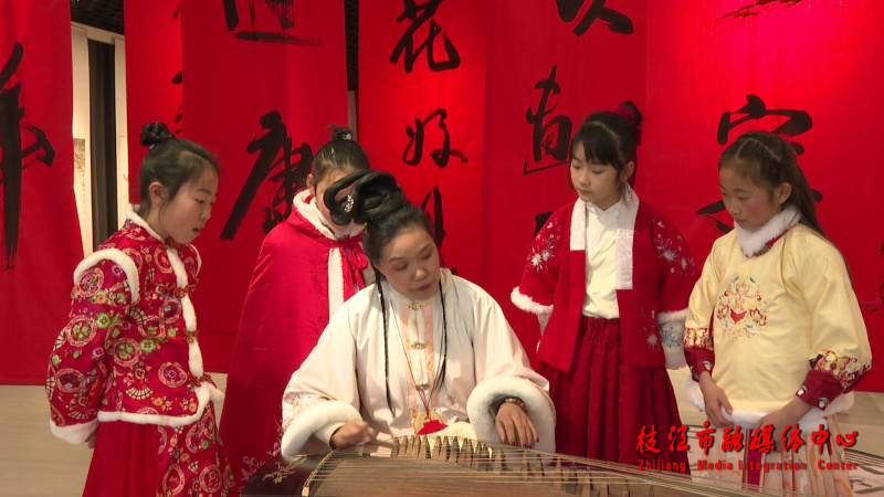 李玲丽是枝江实验小学的一名音乐教师,也是一名传统文化爱好者。从除夕开始到初七,每天下午她都会到展馆弹古筝。“今天我专门带孩子们过来欣赏字画,感受传统文化,也希望更多人感受中国风的美,更好地弘扬传承传统文化。”