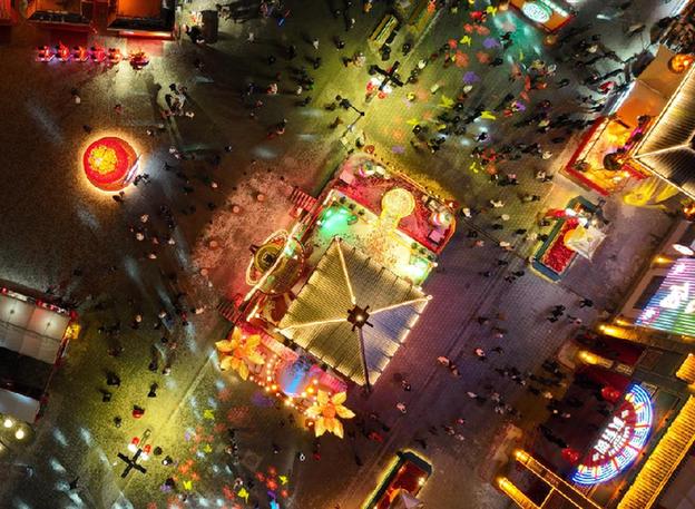 1月23日,市民在沈阳新春皇寺庙会游玩(无人机照片)。(新华社记者杨青摄)