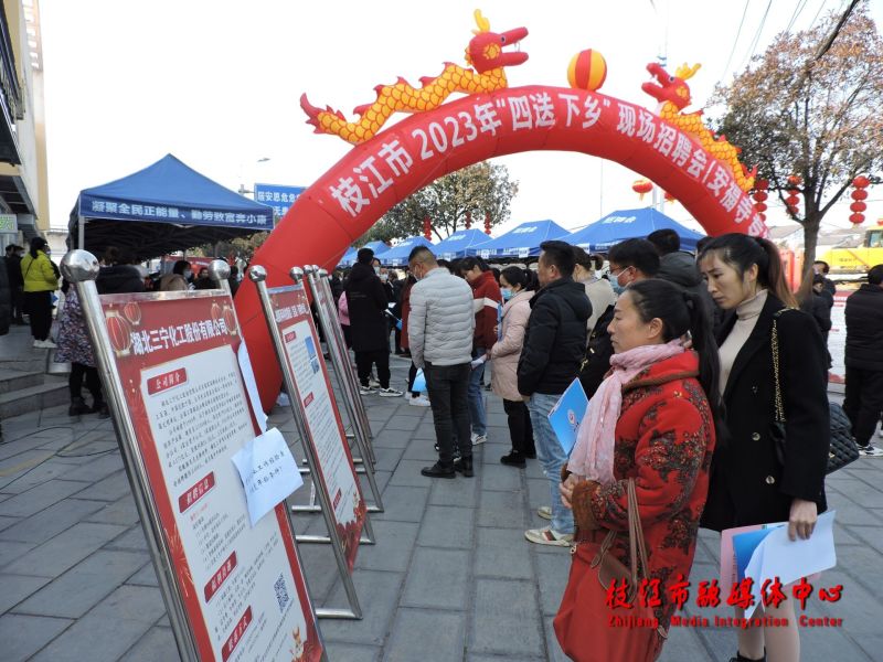 枝江融媒(记者 胡炜昊 通讯员 王清青)新年伊始,春风送暖。1月30日,枝江市2023年“四送下乡”现场招聘会走进安福寺镇,现场为求职者和企业牵线搭桥。