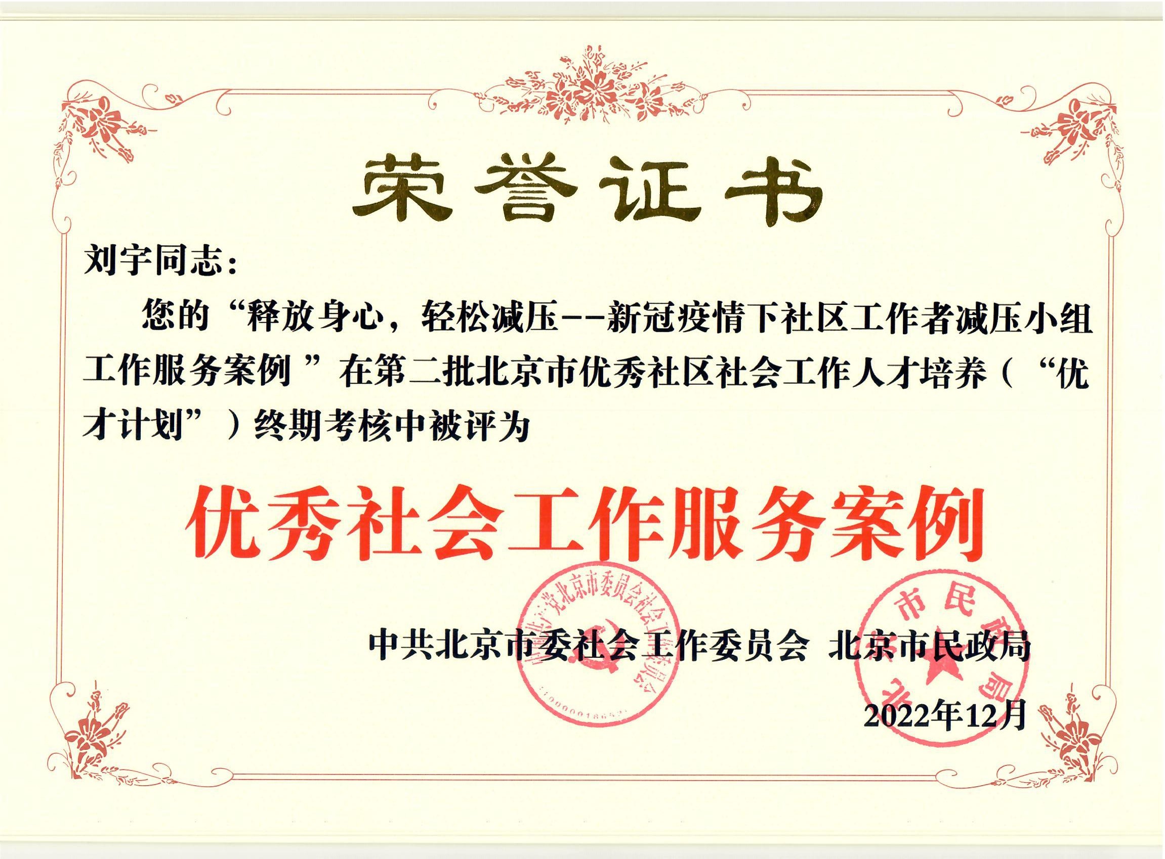 刘宇工作服务案例获评北京市优秀工社会作服务案例