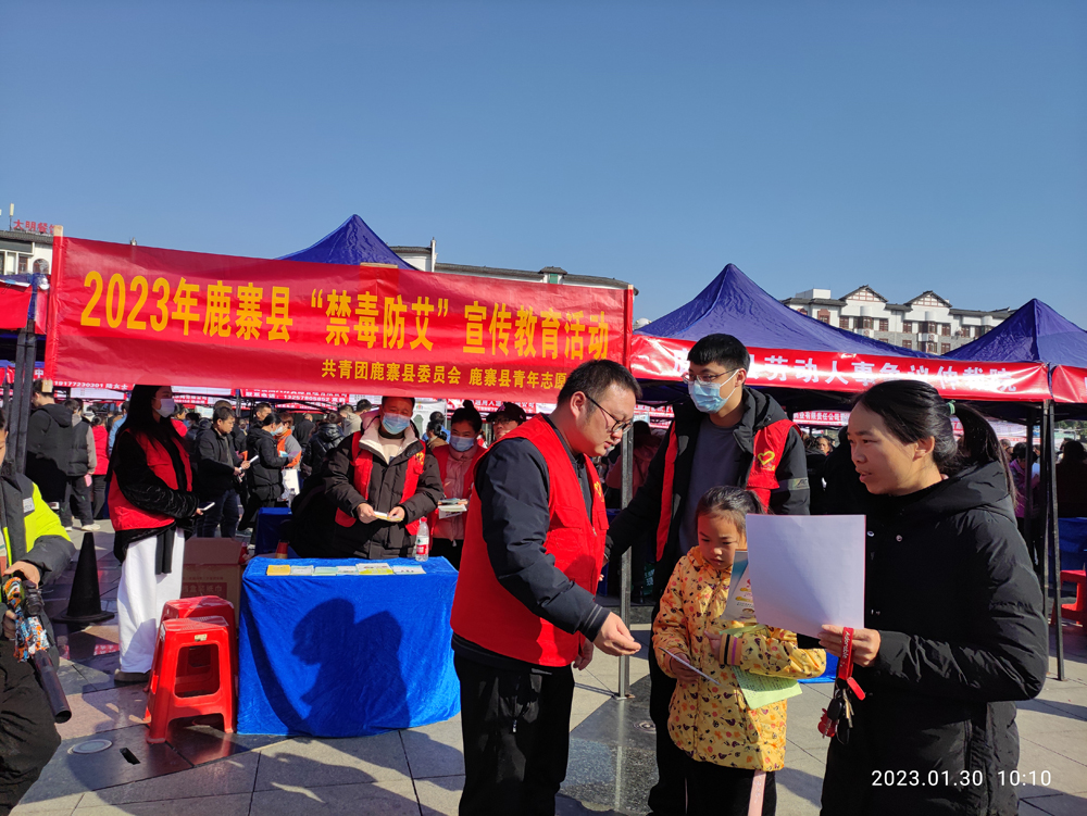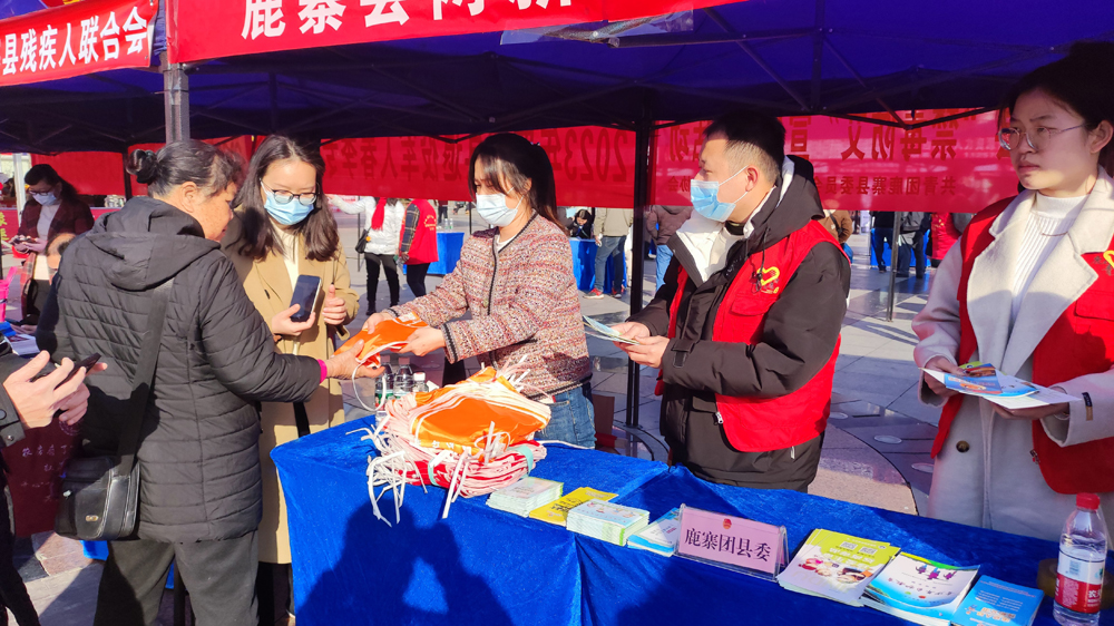 1月30日,鹿寨县在县城文化广场举办2023年“春风行动”暨“就业援助月”专场招聘会。当天,团县委、县青年志愿者协会在招聘会现场向求职者及市民开展文明宣传活动。