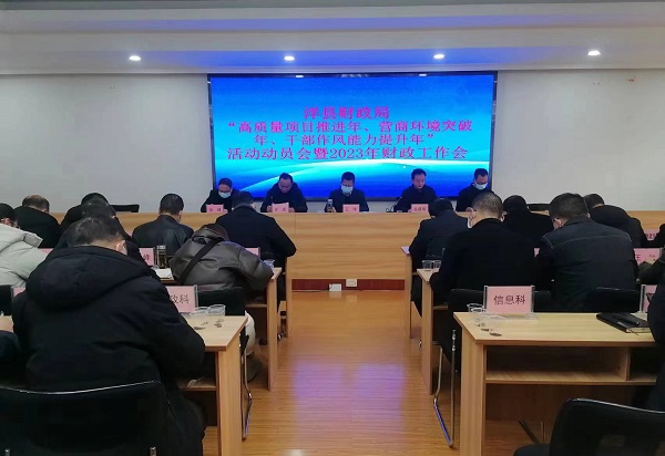 2023年2月1日上午,洋县财政局召开财政系统“高质量项目推进年、营商环境突破年、干部作风能力提升年”动员会暨2023年财政工作会议,学习中、省财政工作会议精神,传达县委赵斌书记在“三个年”活动动员会上的讲话精神,安排部署2023年财政工作。会议由局党组书记、局长王锋主持。