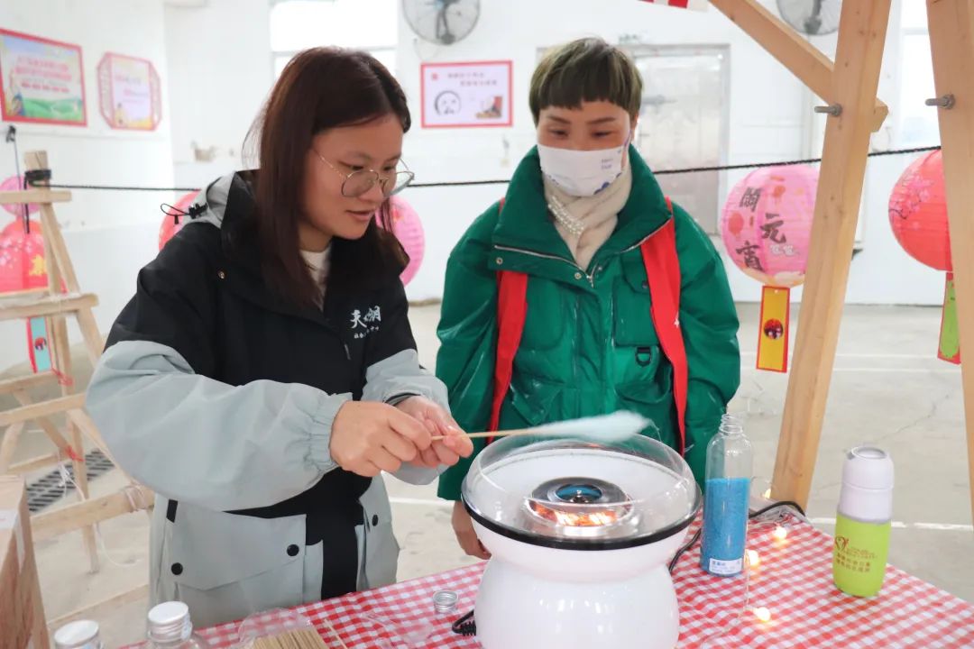 完成了猜灯谜和做手工的挑战,来一根棉花糖奖励一下优秀的自己吧!在棉花糖体验区,孩子们可凭自己的出色的作品,兑换一根棉花糖,感兴趣的小朋友,还可以让志愿者教自己如何制作棉花糖。
