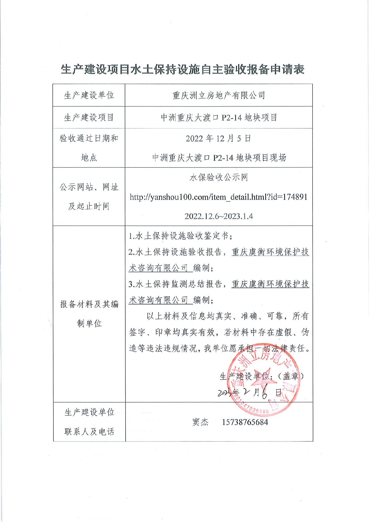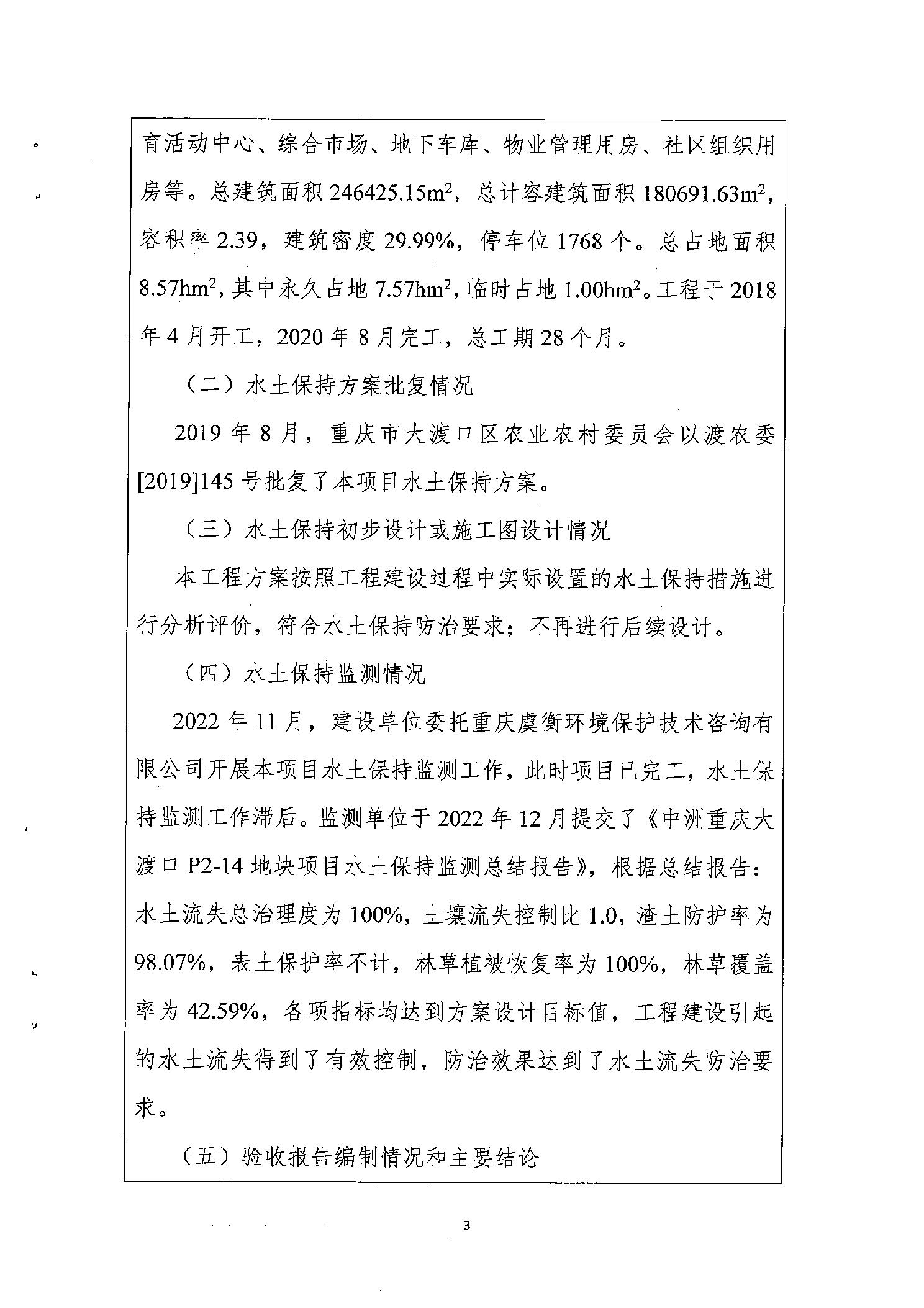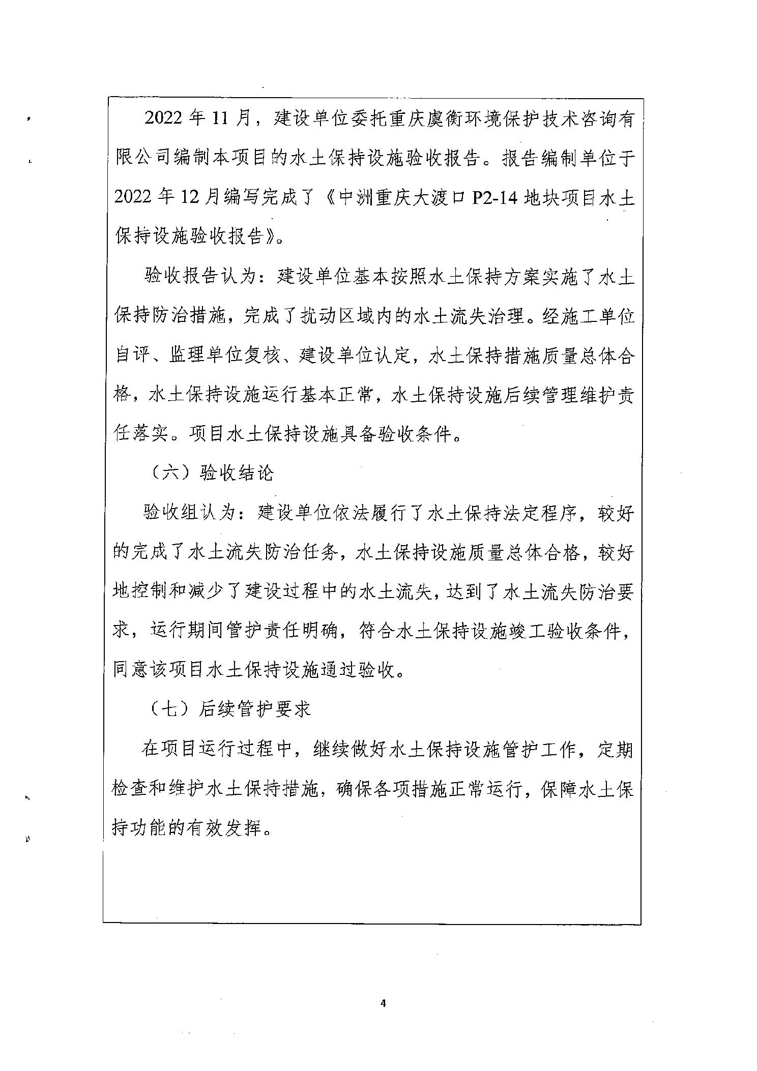 中洲重庆大渡口P2-14地块项目水土保持设施自主验收报备公示