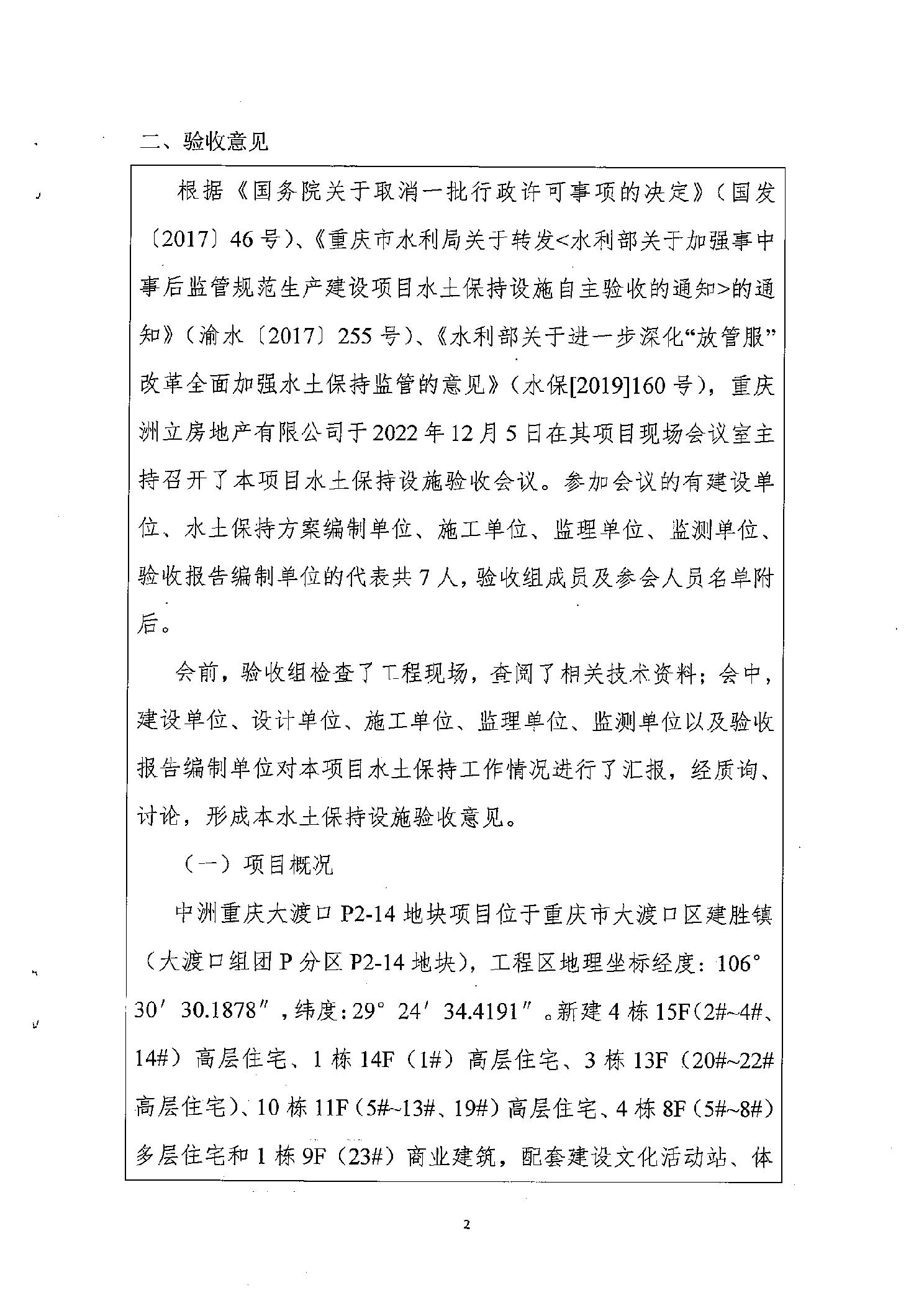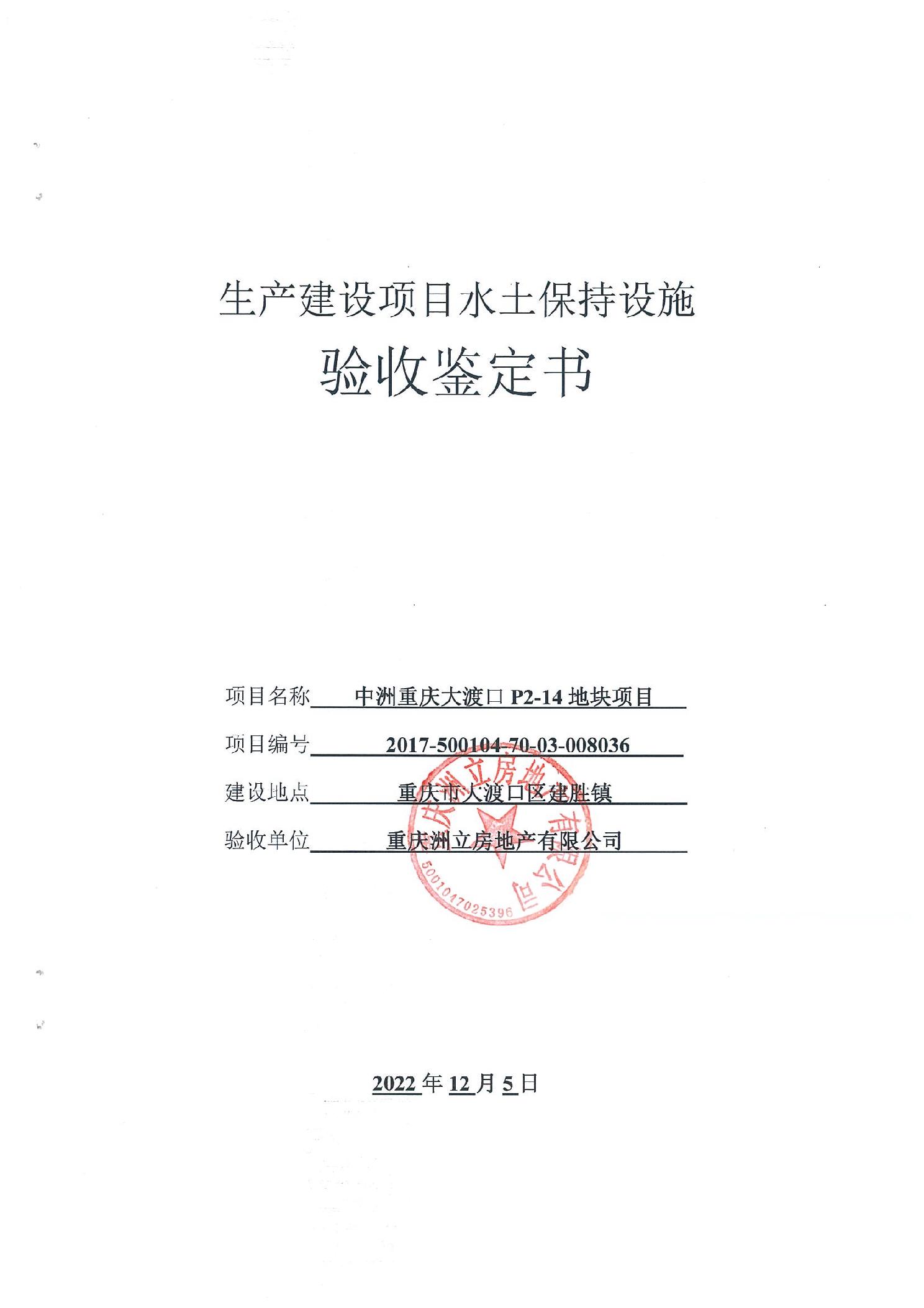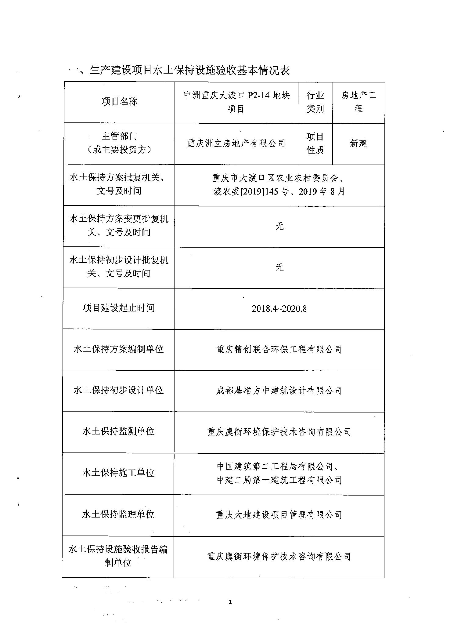 中洲重庆大渡口P2-14地块项目水土保持设施自主验收报备公示