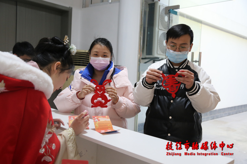 现场的各种传统文化互动体验也让前来游玩的市民跃跃欲试。赏花灯环节中,在工作人员的帮助下,一个个红彤彤的兔型灯笼在居民手中成型。居民们一起和面、搓馅,包元宵,一个个圆滚滚的元宵在水中翻腾,像是一只只顽皮的雪娃娃。大家津津有味地吃着亲手包的元宵,脸上洋溢着幸福和快乐。