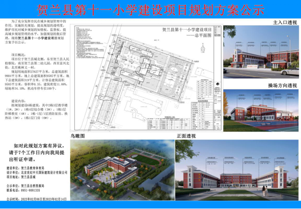 为持续改善贺兰县学校基本办学条件,提高全县义务教育教学水平和教学质量,缩小城乡、区域、校际差距,逐步实现义务教育资源均等化,巩固义务教育基本均衡成果,加快推进我县义务教育优质均衡发展和城乡一体化,夯实全县“义务教育优质均衡验收”基础,贺兰县2023年在县城北侧再添小学1所。目前,该项目规划方案正在公示中。