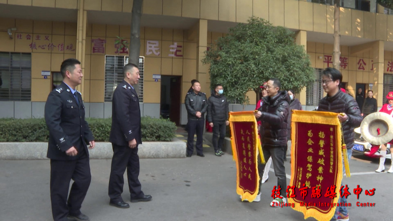 枝江融媒(记者 闫双双)“感谢,感谢,十分感谢警察同志们的帮助!”2月6日上午,枝江国贸苹果手机店商家为刑侦大队送上两面分别写有“人民警察为人民 失而复得暖人心”和“扬警威破案神速 为企业保驾护航”的锦旗,连连表达感谢。