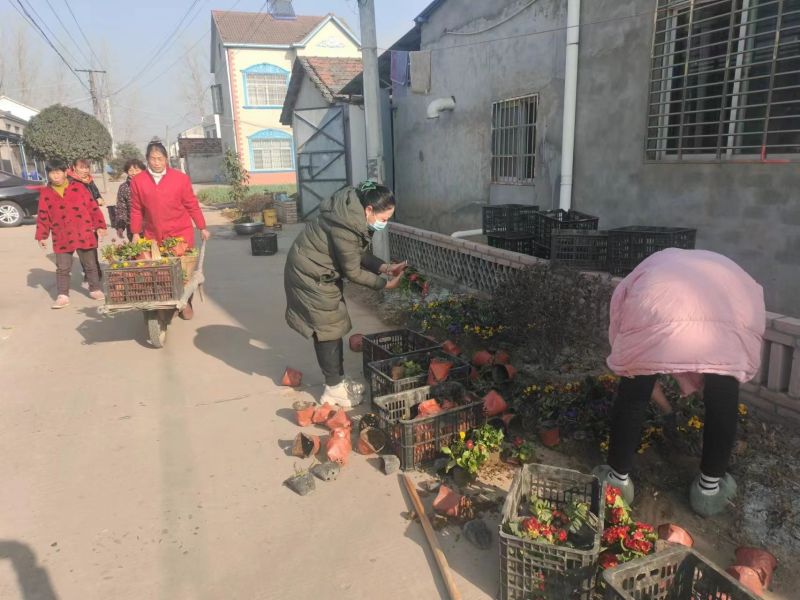 原来驻村单位市住建局园林绿化中心向兴隆山村捐赠五色鲜花6000余钵,用于一组核心湾落及村民庭院建设,一盆盆角堇、雏菊、报春花满含着村民对美好环境的无限向往。为了及时让五色草花保鲜保质并发挥应有效用,市住建局驻村工作队及村干部刘红艳充分调动人民群众的力量,动用共同缔造的理念,挨家挨户入户动员群众自发美化家园,并主动带头、认真指导村民进行栽种。