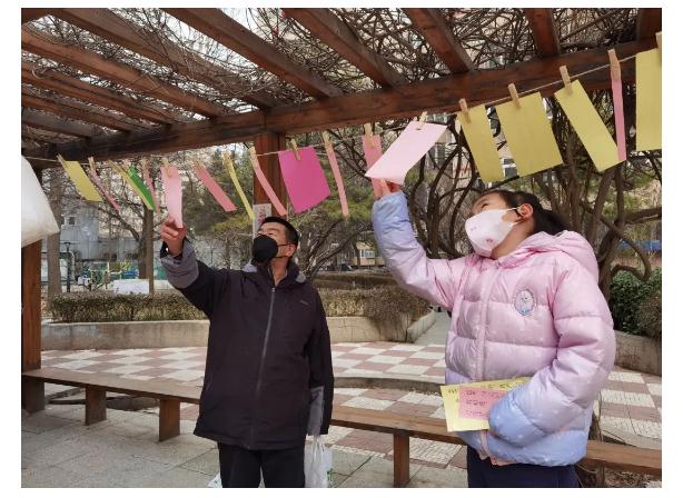 各社区新时代文明实践站组织地区居民开展猜灯谜文化活动,街坊四邻齐参与,沉浸在喜庆的氛围中。