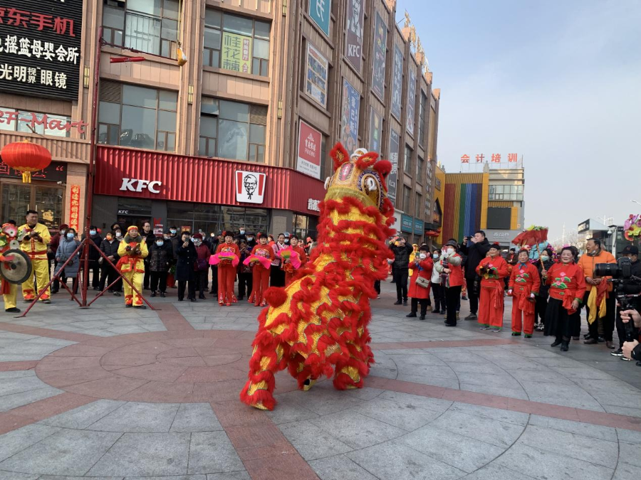 “咚咚锵~咚咚锵~”上午九时,在一片锣鼓喧天和欢声笑语中,踩街活动正式开始。舞龙、舞狮、腰鼓、旱船、跑驴……此次表演内容丰富、形式多样,100余人参加了演出活动。