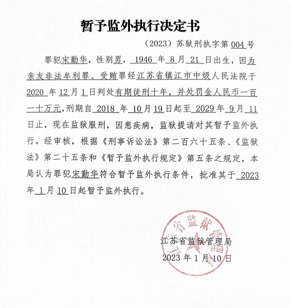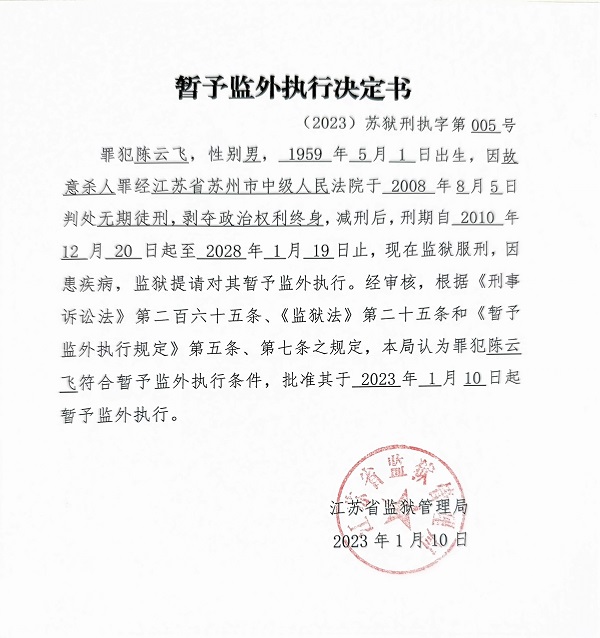 暂予监外执行决定书(2023)苏狱刑执字第004-005号