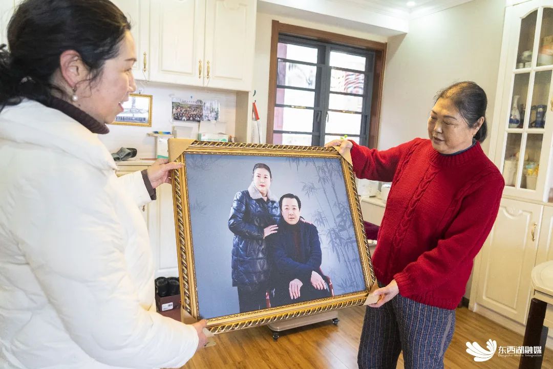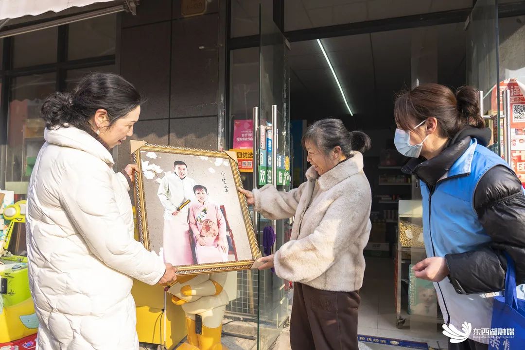 2月14日,径河稻香社区为结婚30年夫妻们准备了一份特别的情人节礼物,将上周为他们拍摄的合影照片精心装裱后送上门。