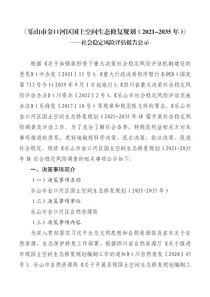 《乐山市金口河区国土空间生态修复规划(2021-2025年)》