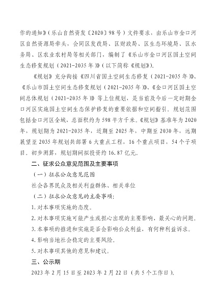| 所在地区: | 四川-乐山-金口河区 | 发布日期: | 2023年2月15日 |