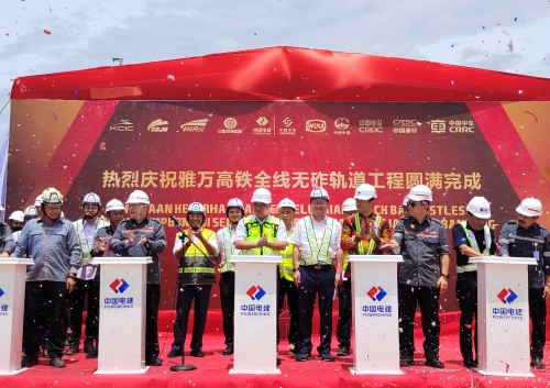 此前,中国电建雅万高铁项目部于2021年12月29日成功铺设雅万高铁全线首块CRTSⅢ型板式无砟轨道轨道板,并全线率先完成管段无砟轨道工程;各参建单位分工协作,已于2023年2月12日完成雅万高铁8组高速无砟道岔铺设。