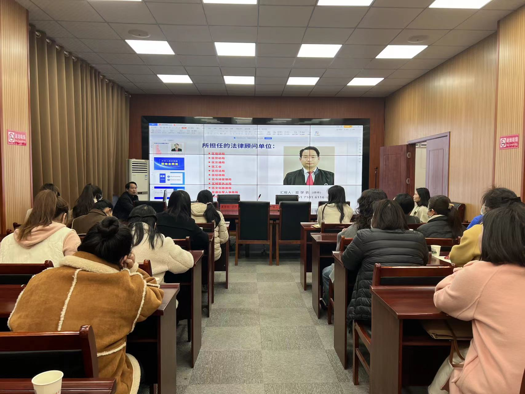 (本网讯)为深入学习宣传贯彻党的二十大精神,深入推进工会女职工工作,进一步激发广大女职工在奋进新征程中展现新气象、新作为,3月1日上午,沼山镇开展“三八”国际劳动妇女节暨女职工普法宣传月活动,活动紧紧围绕“与法同行春风暖,巾帼建功谱新篇”主题,为女职工普及法律知识。此次讲座由沼山镇工会副主席詹文清主持,湖北民福律师事务所张学农律师主讲,围绕《劳动合同法》《婚姻法》等重点法律开展宣传讲座。