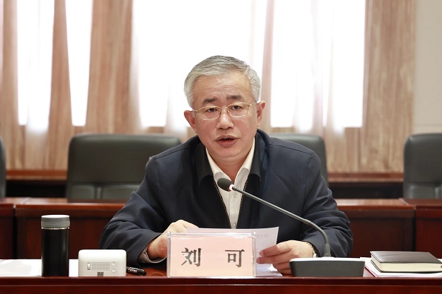 刘可在会上讲话。
